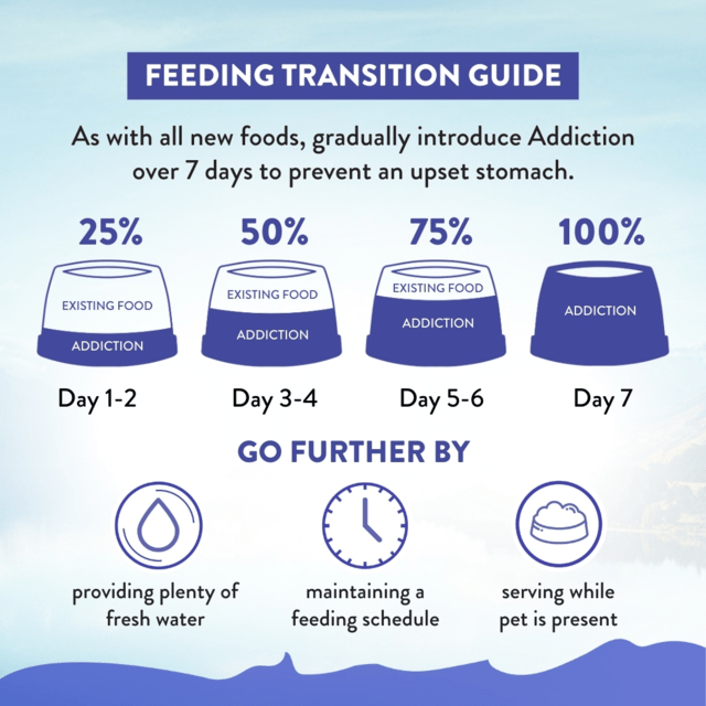 Switching to a new diet? Transition slowly over 7 days by mixing increasing amounts of Duck Royale Entrée with decreasing amounts of your dog’s current food. If using wet food as a topper, reduce dry portions accordingly to prevent overfeeding.