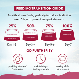 When switching to Viva La Venison, do so gradually over 7 days. Start by mixing a small portion of the new food with your dog’s current diet, increasing the amount of Viva La Venison each day. If adding wet food, reduce the dry portion to prevent overfeeding.