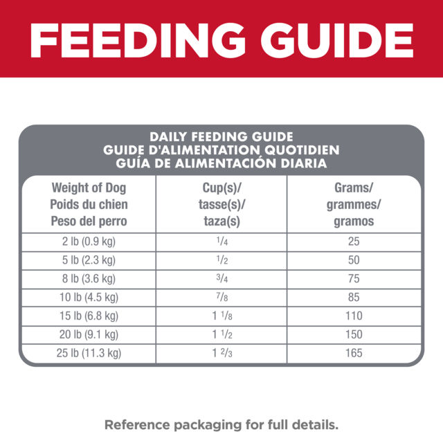 Fresh water should be available at all times. Please see package for complete feeding instructions. Adjust feeding amounts as necessary to maintain optimal weight. If you are unsure, ask your veterinarian. New to this food? Mix increasing amounts of your pet’s new food with decreasing amounts of the old food over a 7 day period. Keep fresh water available at all times! Your pet’s nutritional needs may change as they age. Ask your vet at every checkup.